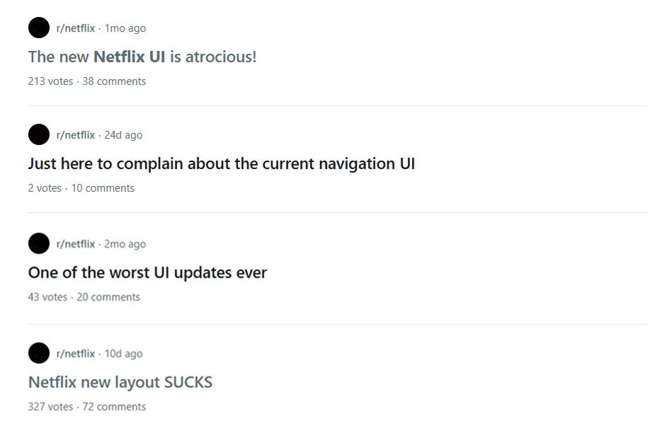 서구권에서는 넷플릭스 최신 UI 업데이트를 놓고 마치 우리나라 카카오톡 업데이트와 같은 격한 거부 반응을 보이고 있다.